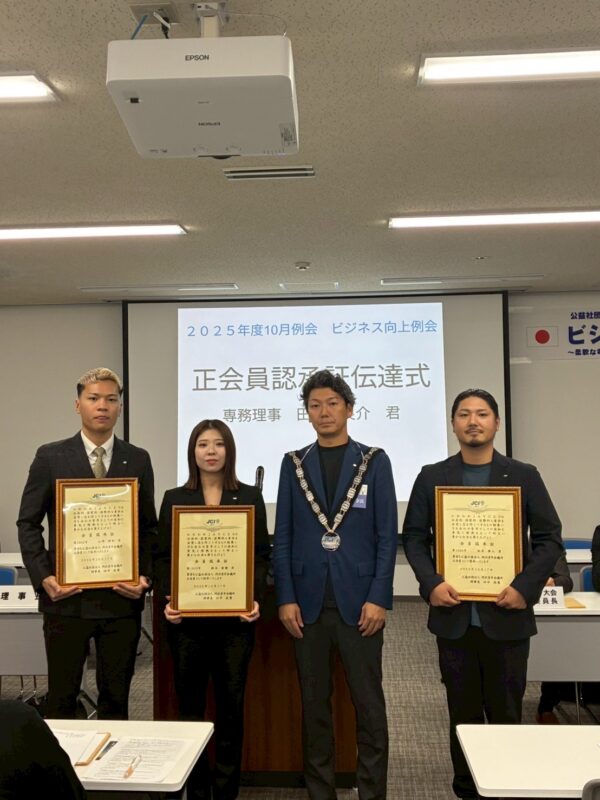 正会員認承証伝達式では、 山崎 将和 君、鈴木 香穂 君、西木 夢人 君、須崎 佑也 君、石川 哲也 君に正会員認承証が贈られました。