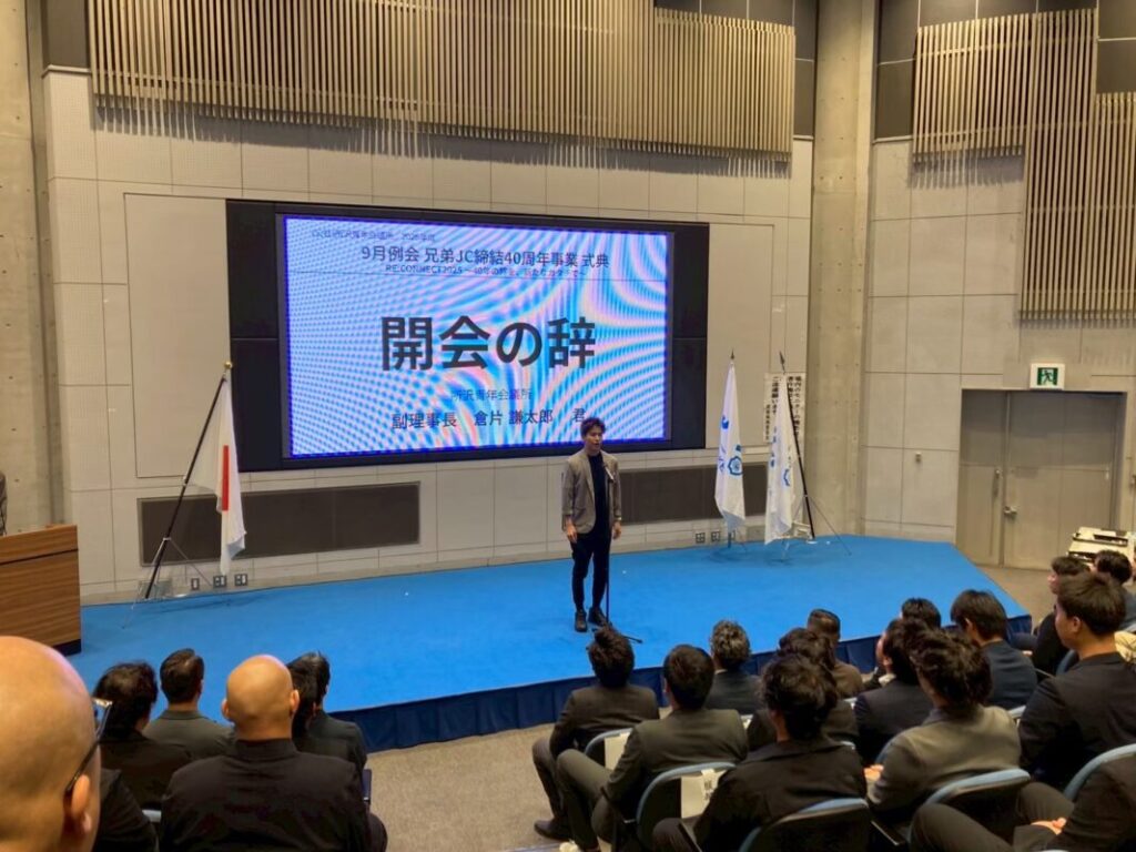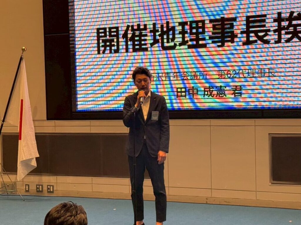 まずは開催地理事長挨拶として所沢青年会議所理事長 田中 成憲 君の挨拶があり、その後武生青年会議所理事長 岡崎 匠悟 君の挨拶がありました。