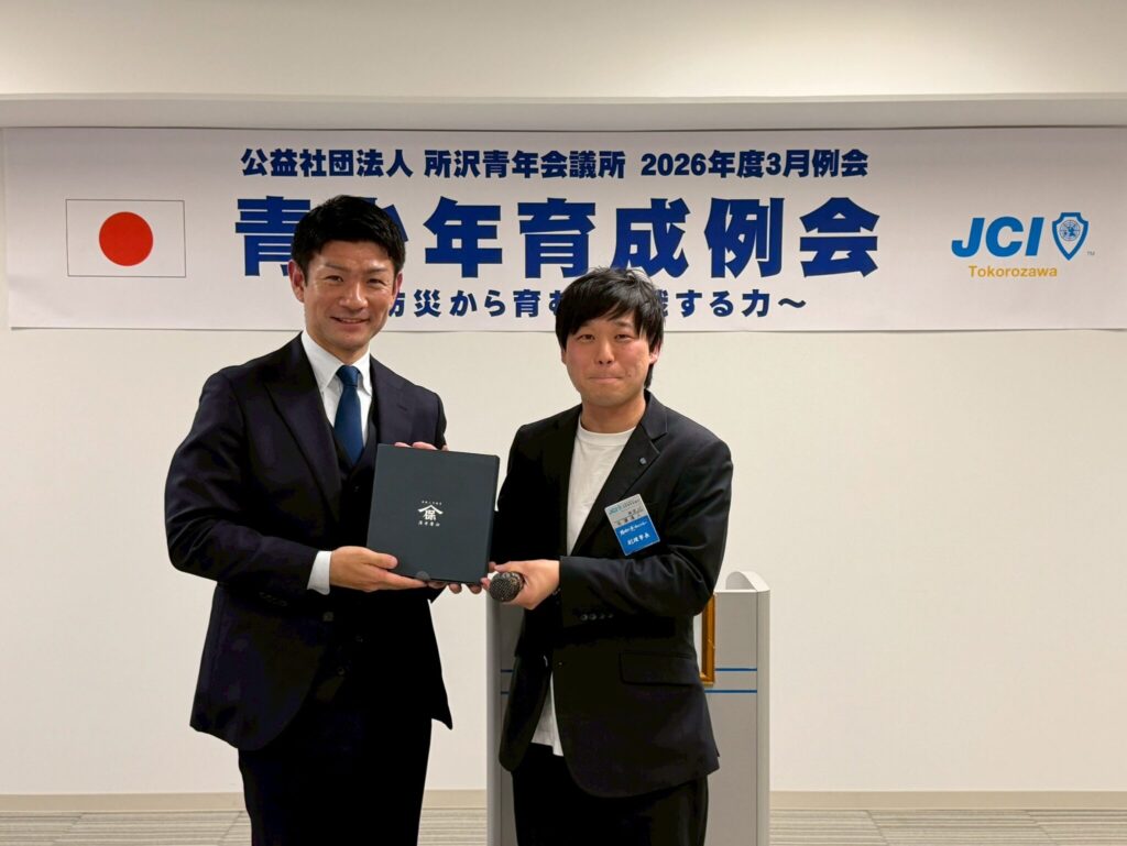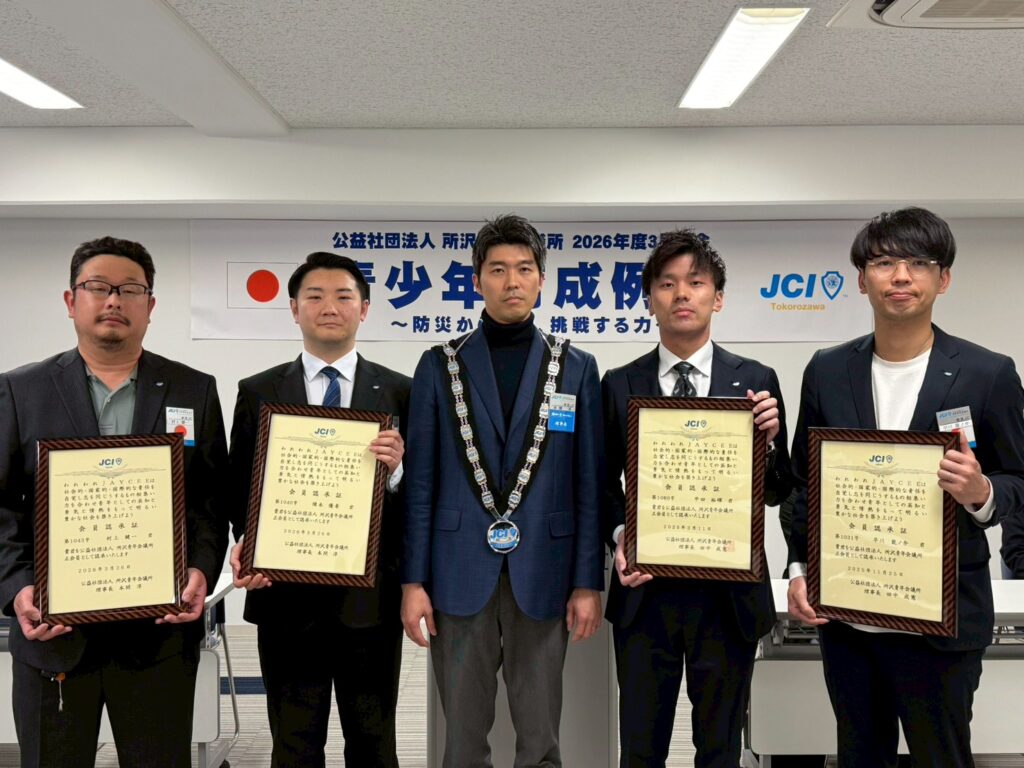 正会員として入会された早川 龍ノ介君、平田 裕暉君、隈本 優希君、村上 建一君の正会員認承証伝達式を執り行いました。 新たな仲間を迎え、組織としてさらなる前進を誓う場となりました。